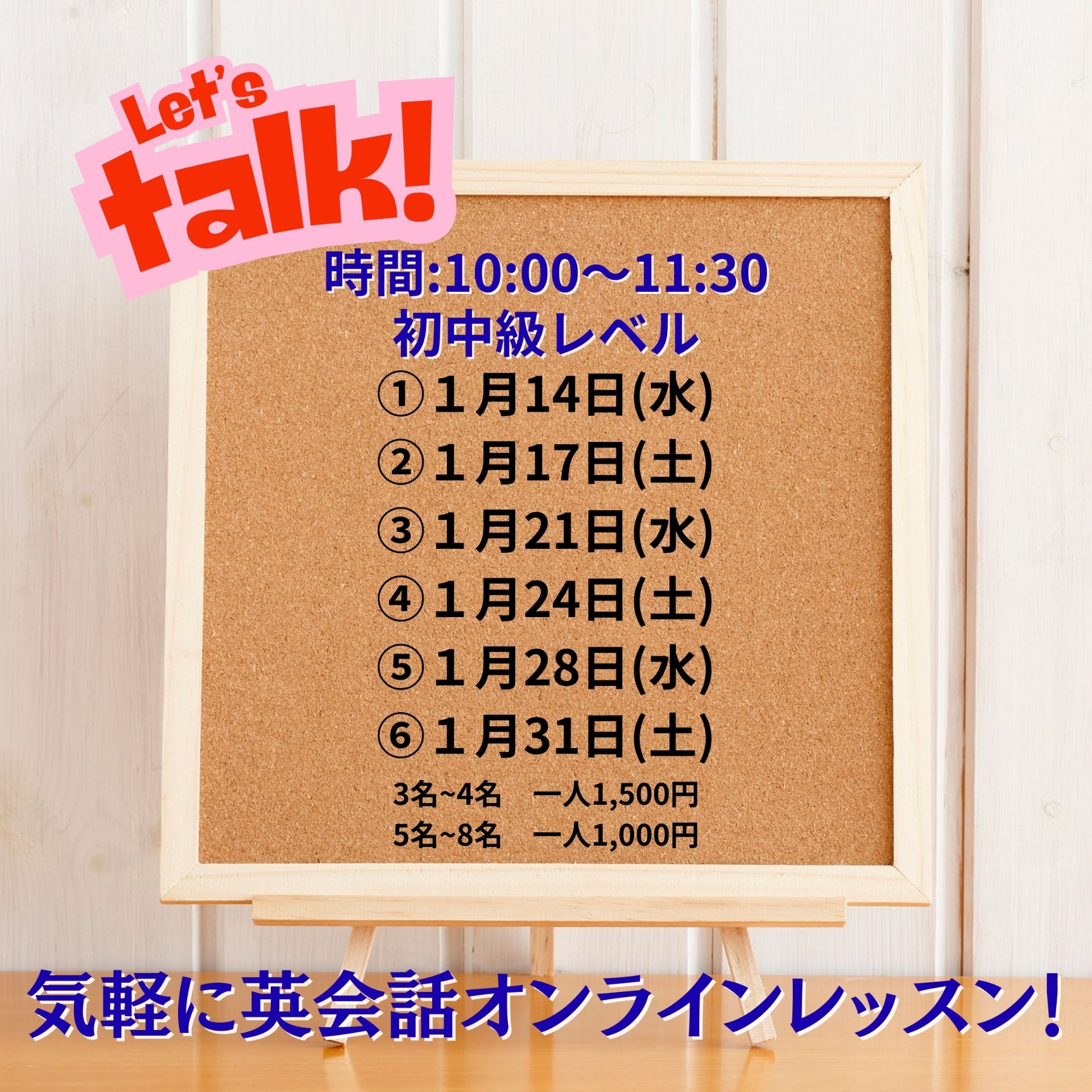 今月は以下の日程で、オンラインでグループレッスンを開催予定